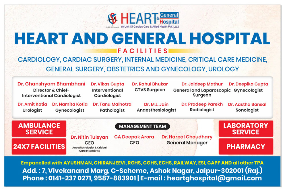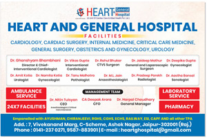 Data shown in website is just selective / indicative. For complete updated data of Doctors, Hospitals, Nursing Home, Clinics, Diagnostic Centers, Medical Shops, Surgical Suppliers, Pharma Co. & General Suppliers etc of Rajasthan, Pl. contact +91 98292 93747, Email : Independentmedia1@gmail.com